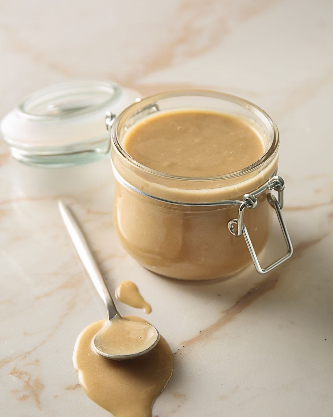 Hulled Tahini: Made from sesame seeds with the outer husk removed, resulting in a paler, smoother, and milder-tasting paste. It’s creamier and slightly less bitter, the variety most often used in dips, dressings, and desserts.